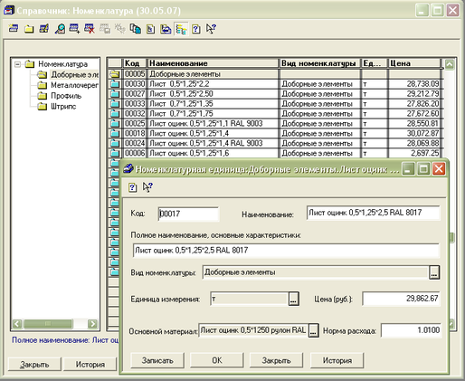 Рисунок 3.8 – Экранная форма справочника «Номенклатура»