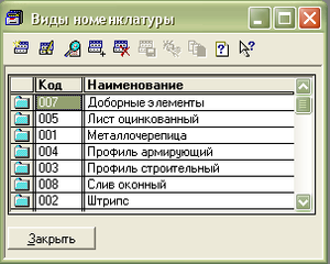 Рисунок 3.5 – Экранная форма справочника «Виды номенклатуры»