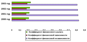 | Коэффициент финансовой независимости (автономии) | 0,83 | 0,83 | 0,81 | 0,81 | Кавт = СК/А Доля собственных средств в общем объеме активов. |