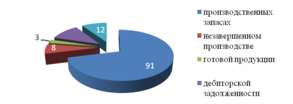 В 2006 году структура общей продолжительности оборота оборотного капитала характеризуется значительной продолжительностью нахождения оборотных активов в производственных запасах, что свидетельствует о большой продолжительности производственного цикла (рисунок 3).