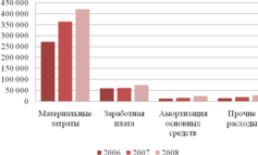 Ежегодно увеличиваются расходы по всем элементам затрат, особенно интенсивный рост наблюдается по материальным затратам, которые имеют в структуре себестоимости наибольший удельный вес (рисунок 6).