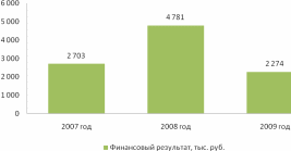 Для наглядности отразим динамику изменения показателя финансового результата в анализируемом периоде 2007-2009 гг. на рисунке 2.4.