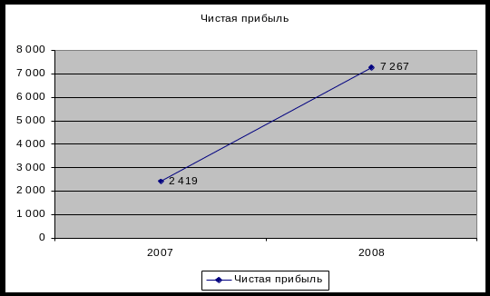 Прибыль от финансово-хозяйственной деятельности увеличилась на 4 119 тыс. руб. Прибыль до налогообложения также увеличилась – на 6 379 тыс. руб. и составила 9 562 тыс. руб. Результаты структурного анализа показали, что доля прибыли от продаж уменьшилась на 1,3%. А доля чистой прибыли в выручке от продаж составила 3,36%, произошло увеличение данного показателя на 144% по сравнению с 2007 годом, что является положительным фактором.