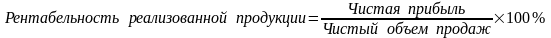 Рентабельность реализованной продукции демонстрирует долю чистой прибыли в объеме продаж предприятия. Другими словами, данный показатель характеризует эффективность предпринимательской деятельности: сколько прибыли имеет предприятие с рубля продаж.