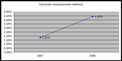 Удельная операционная прибыль, напротив, повысилась в 2008 году по отношению к 2007 году. Это произошло за счет увеличения прочих операционных доходов.
