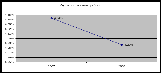 Как видно из графика, удельная валовая прибыль в 2008 году снизилась по отношению к 2007 году, но незначительно. Это произошло за счет увеличения себестоимости реализованной продукции.