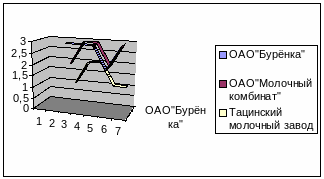 Что в соответствии с приведенной выше шкалой конкурентоспособности означает: молочная продукция ОАО «Молочный комбинат» и ОАО «Бурёнка» обладают высоким уровнем конкурентоспособности, а молоко Тацинского молочного завода обладает средним уровнем конкурентоспособности.