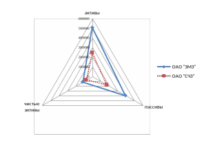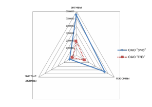 Как показывают полученные данные, в отчетном периоде разрыв в показателях стоимости активов и пассивов между ОАО «ЗМЗ» и ОАО «СЧЗ» увеличился, за счет роста активов и пассивов ОАО «ЗМЗ» и снижения активов и пассивов ОАО «СЧЗ». Стоимость чистых активов ОАО «ЗМЗ» превысила стоимость чистых активов ОАО «СЧЗ» на 72,46%.