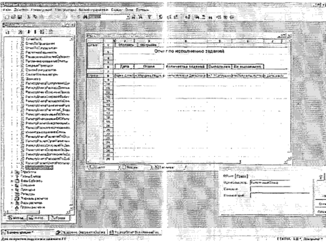 Для реализации связи «план» использован объект типа «Отчет» с идентификатором «Выполнение Плана», который позволяет на дату отчета выводить информацию о выполнении плановых заданий в разрезе отделов (рис 27).