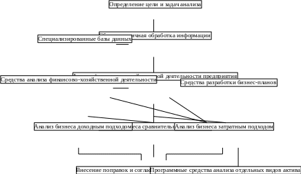 Представим в виде отдельных направлений исследование информационного процесса анализа, от сбора информации до получения результата. Это необходимо для анализа технологического процесса анализа и исследования применения инструментария на различных этапах анализа стоимости бизнеса.