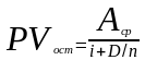 Для предоставления пользователю большей гибкости при решении задач анализа бизнеса доходным подходом в аналитических системах должны быть представлены все методы этого подхода. При этом использование метода капитализации прибыли позволит пользователю, например, провести экспресс-оценку стоимости бизнеса в короткие сроки, с допущением, что бизнес приносит постоянный доход Аср за фиксированный срок. Это может быть аренда автомобилей или недвижимости. Причем после использования объекты могут быть проданы.
