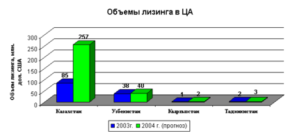 В Казахстане в 2004 году структура передаваемого в лизинг имущества имеет тенденцию к увеличению доли производственного оборудования, как результат предоставления льготы по НДС при импорте оборудования по лизингу. Однако это увеличение незначительное и составляет всего лишь 6% против 5% в 2003 году.