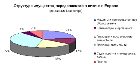 Поскольку лизинг у нас в стране находится еще на стадии развития в структуре коммерческих лизинговых компаний преобладает высоколиквидное имущество, в первую очередь транспорт.