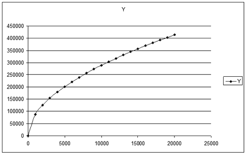 Рассчитываем по формуле (4.4) производственную функцию