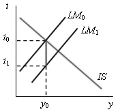 Посредством мультипликатора можно также представить в алгебраической форме последствия увеличения номинального количества денег в кейнсианской модели. Если в состоянии ОЭР возрастет предложение денег, то домашние хозяйства используют их на покупку облигаций, так как при заданной величине дохода спрос на деньги для сделок фиксирован. Увеличение спроса на облигации повысит их курс и снизит текущую ставку процента. В результате такого снижения ставки процента спрос на инвестиции возрастет на