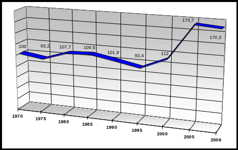 | Показатели | 1970 | 1975 | 1980 | 1985 | 1990 | 1995 | 2000 | 2004 | 2006 | 2006 к 1970 в %, раз |