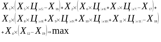 В нашем случае процесс оптимизации заключается в подборе таких величин Х1, Х2, Х3 и Х4 , чтобы при заданных ограничениях целевая функция расчетной прибыли П достигла максимума, т.е.: