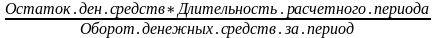 а втором этапе производится оценка достаточности денежных средств. Для этого определяют длительность периода их оборота по формуле: