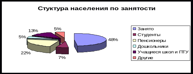 В структуре безработных преобладают граждане, добровольно уволившиеся с места работы, эта категория составляет 30% от общей численности безработных. Доля граждан, уволенных в связи с ликвидацией организации, либо сокращением численности или штата работников организации, составляет 22%. Потребность в рабочей силе на 1.01.2007 года составила 764 вакансии.