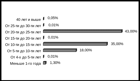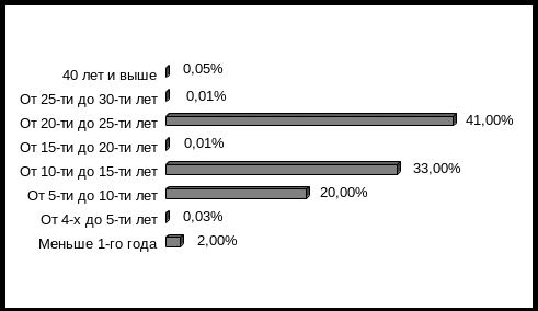 | От 5-ти до 10-ти лет | 112 | 1 211 679 | 7,6 |