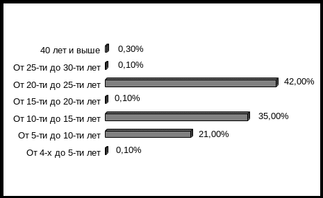 | От 10-ти до 15-ти лет | 186 | 7 671 948 | 12,4 |