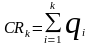 Коэффициент рыночной концентрации (CR) рассчитывается как процентное отношение реализации продукции определенным числом крупнейших продавцов к общему объему реализации на данном товарном рынке. В качестве основы для расчета рыночной доли продавца помимо традиционного объема продаж может использоваться численность занятых, величина активов или величина добавленной стоимости фирмы к суммарному значению данного показателя для рынка в целом.