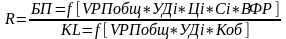 Аналогично осуществляется факторный анализ рентабельности совокупного капитала. Балансовая сумма прибыли зависит от объема реализованной продукции (VРП), ее структуры (УДi), себестоимости (Сi), среднего уровня цен (Цi) и финансовых результатов от прочих видов деятельности, не связанных с реализацией продукции и услуг (ВФР).