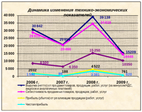 Прибыль (убыток) от реализации продукции (работ, услуг) в 2008 году увеличилась на 4 334 тыс. руб. по сравнению фактическими данными 2007 года. Прибыль (убыток) от реализации продукции (работ, услуг) в 2009 году снизилась на 3 761 тыс. руб. или на 83,2%, по сравнению с фактическими данными 2008 года.