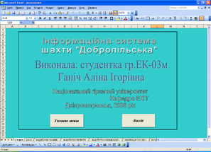 У даній дипломній роботі створюється "Інформаційна система максимізації прибутку на шахті "Добропільська". У розроблювальній системі використовується кнопковий інтерфейс робочого листа Excel.
