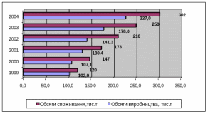 Рисунок 2.5 - Обсяги виробництва і споживання ЛФМ в Україні