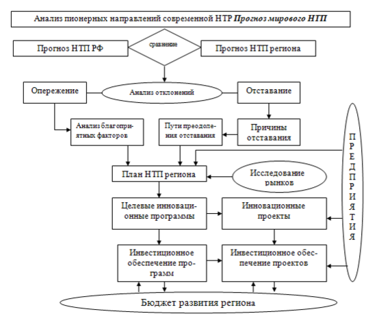 На наш взгляд, Министерству экономики Саратовской области полезно использовать следующую схему прогнозирования и планирования НТП в регионе и связанных с ним инвестиций (схема 3.1).