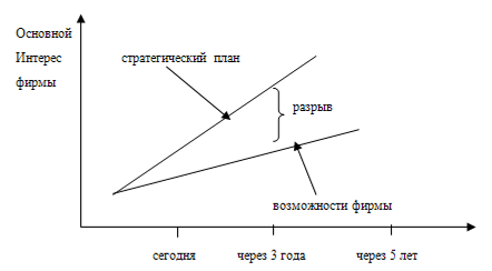 Анализ разрыва – простой, но эффективный метод стратегического анализа и планирования. Его цель – определить, существует ли разрыв между целями предприятия и его возможностями и, если да, установить. Как «заполнить» его (рис. 3.2).