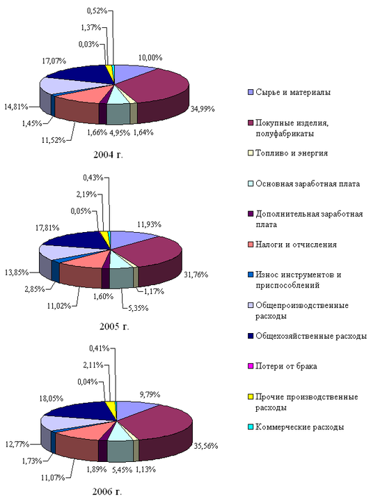 Динамика структуры себестоимости в 2004-2006 гг. отражена на рис. 2.2.