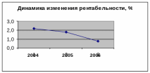 На рис. 2.11 показана динамика изменения рентабельности ООО «ЛИКТОР» за период 2004-2006 г.