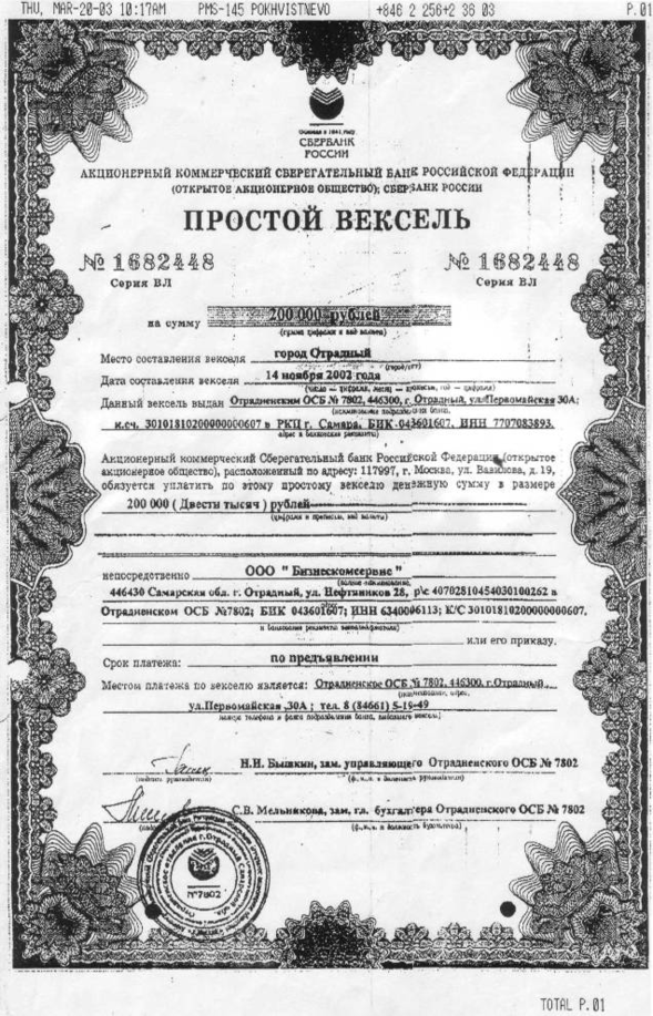 46 Арканников М.В. Предъявление векселя к платежу // Юрист. – 2006. – № 2. – С. 14.