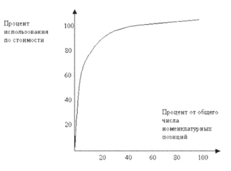 80% стоимости запасов дают 20% наименований хранимых на складе запасов.