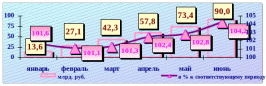 Рис. 2.16 – Денежные доходы на душу населения и реальные располагаемые денежные доходы в июне 2008 года