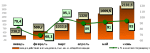 Рис. 2.12 – Динамика ввода в действие жилых домов за январь-июнь 2008 года