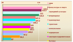 Рис. 2.10 – Индекс физического объема платных услуг по видам в январе-июне 2008 года в % к соответствующему периоду предыдущего года
