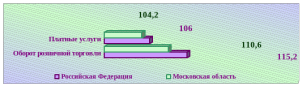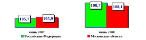 Рост оборота розничной торговли и платных услуг в Московской области и Российской Федерации за январь-июнь 2008 года представлен на рис. 2.11.