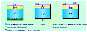 Из общего объема денежных доходов в июне 2008 года население израсходовало на покупку товаров и оплату услуг 93990,8 млн. рублей, или 69% всех доходов, уплату налогов и разнообразных взносов – 14738,8 млн. рублей, или 10,8%, покупку валюты – 3096,1 млн. рублей, или 2,3%. На накопление сбережений во вкладах и ценных бумагах было затрачено 17% доходов. Справочно: в июне 2007 года населением на те же нужды было израсходовано 73,2%, 9,6%, 2,5% и 16,8% денежных доходов соответственно. За анализируемый период в Московской области прослеживается стабильный приток денег на руках населения: январь 2008 года – %, март –, июнь – 0,9%.