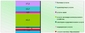 Рис. 2.9 – Структура платных услуг населению в январе-июне 2008 года в % к итогу