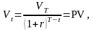 Исходя из этих равенств, производится расчет текущей стоимости PV (present value). Теоретически можно привести все величины к любому временному этапу t