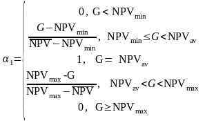 α1 – функция принадлежности нечеткого числа NPV, доли единицы.