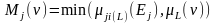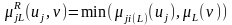 Нечеткое отношение R для L-го правила между j-й входной переменной uj и выходной переменной v в соответствии с принятым правилом минимума выражено следующей функцией принадлежности