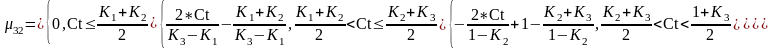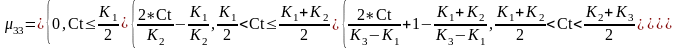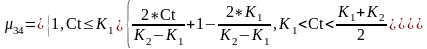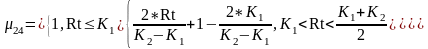 Опишем функции принадлежности для критерия покрытия. Тут также используются границы интервалов для соответствующих уровней риска К1, К2, К3, где К1 – это граница недопустимого уровня риска, К2 – критического, К3 – повышенного. Границей минимального уровня является единица. Значения данных интервалов можно получить из экспертного опроса.