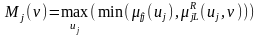 Здесь Mj(v) есть функция принадлежности, устанавливающая локальную связь между нечеткой входной переменной uj и нечеткой выходной переменной v.