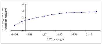 График зависимости значения среднеквадратического отклонения и чистого приведенного эффекта показан на рисунке 1.