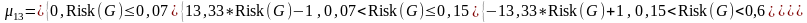 Функции принадлежности к уровням риска имеют вид, представленный в формулах (59)-(72)