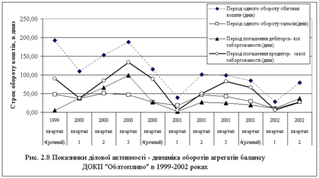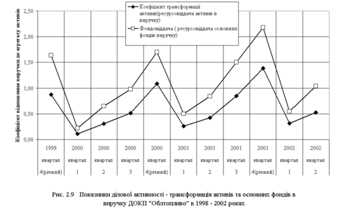 Як видно з результатів розрахунків (табл.Б.1 Додатку Б), підприємство ДОКП «ОБЛПАЛИВО» має дуже малу мобільність активів (частка основних засобів складає більше 50% активів), що не дозволяє йому диверсифікувати напрямок діяльності.